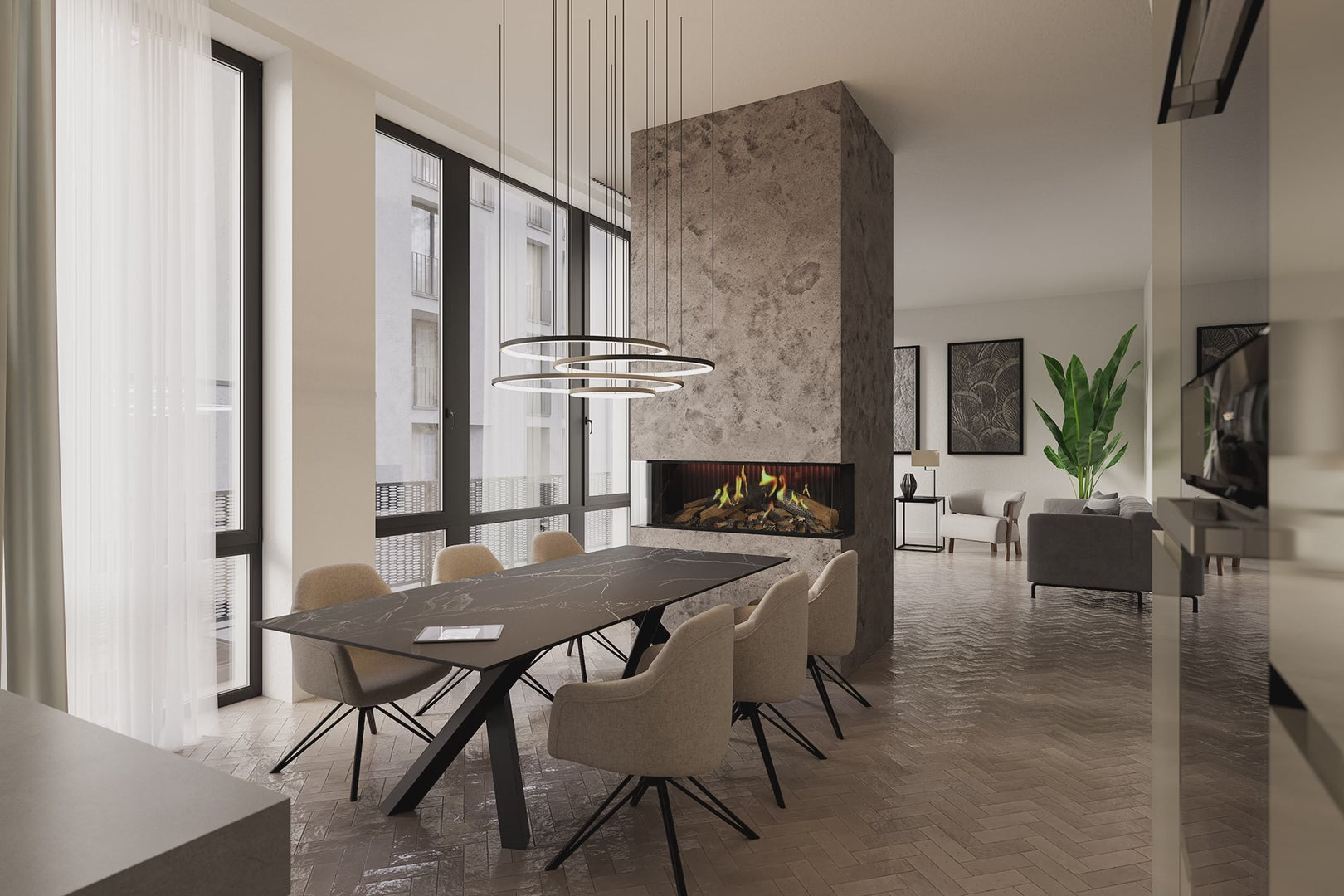 🪟 3-sided installation – all-round view of the fire, even in compact spaces