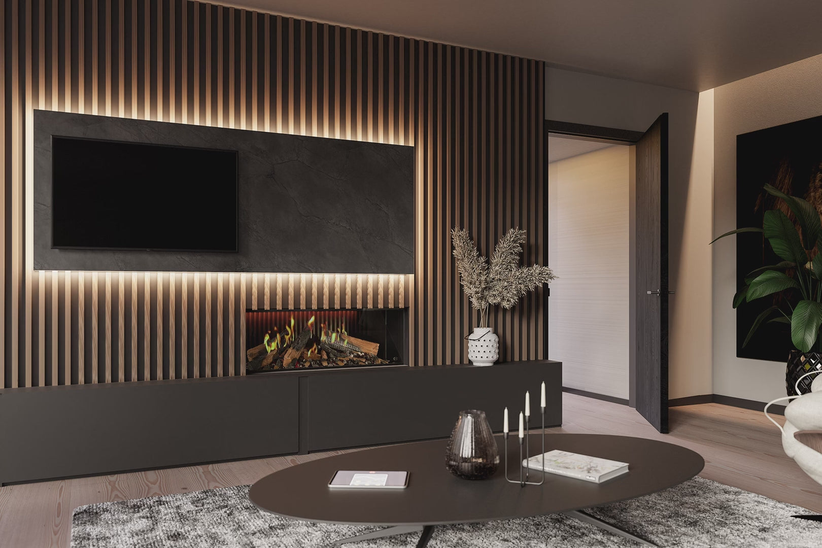 Dankzij het compacte formaat is de Virtuo 100 perfect geschikt voor kleinere cinewalls, wandmeubels of appartementen. De haard is ontworpen voor frontale inbouw en biedt alle sfeer van een echte open haard, zonder de beperkingen van gas of hout.